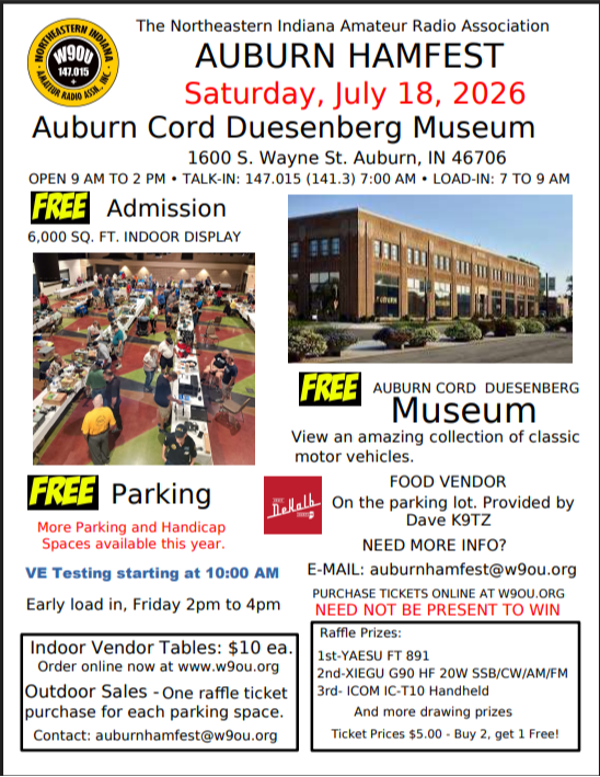 The Northeastern Indiana Amateur Radio Association (NIARA) is a not for profit organization of amateur (ham) radio operators located in the city of Auburn in Dekalb county Indiana.
